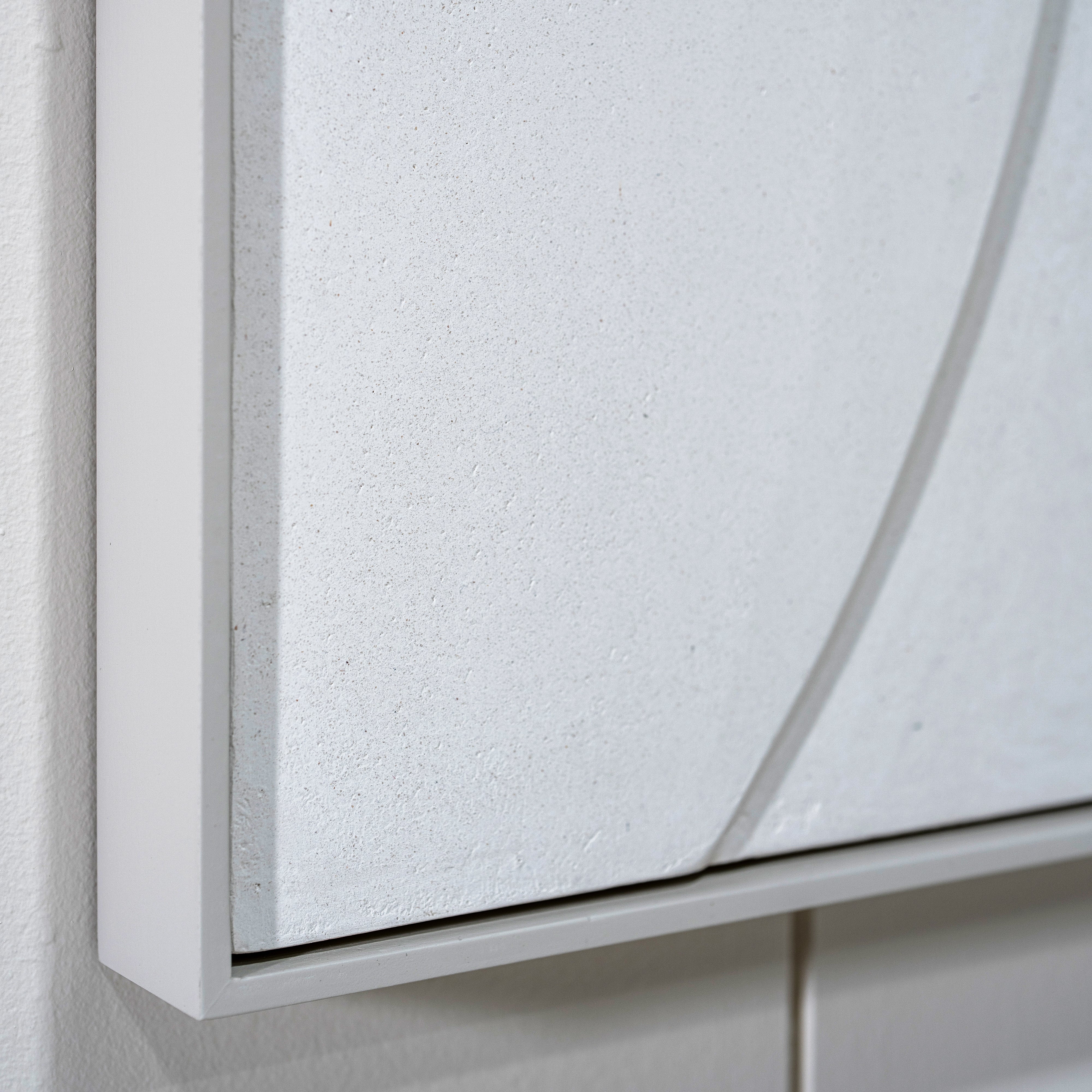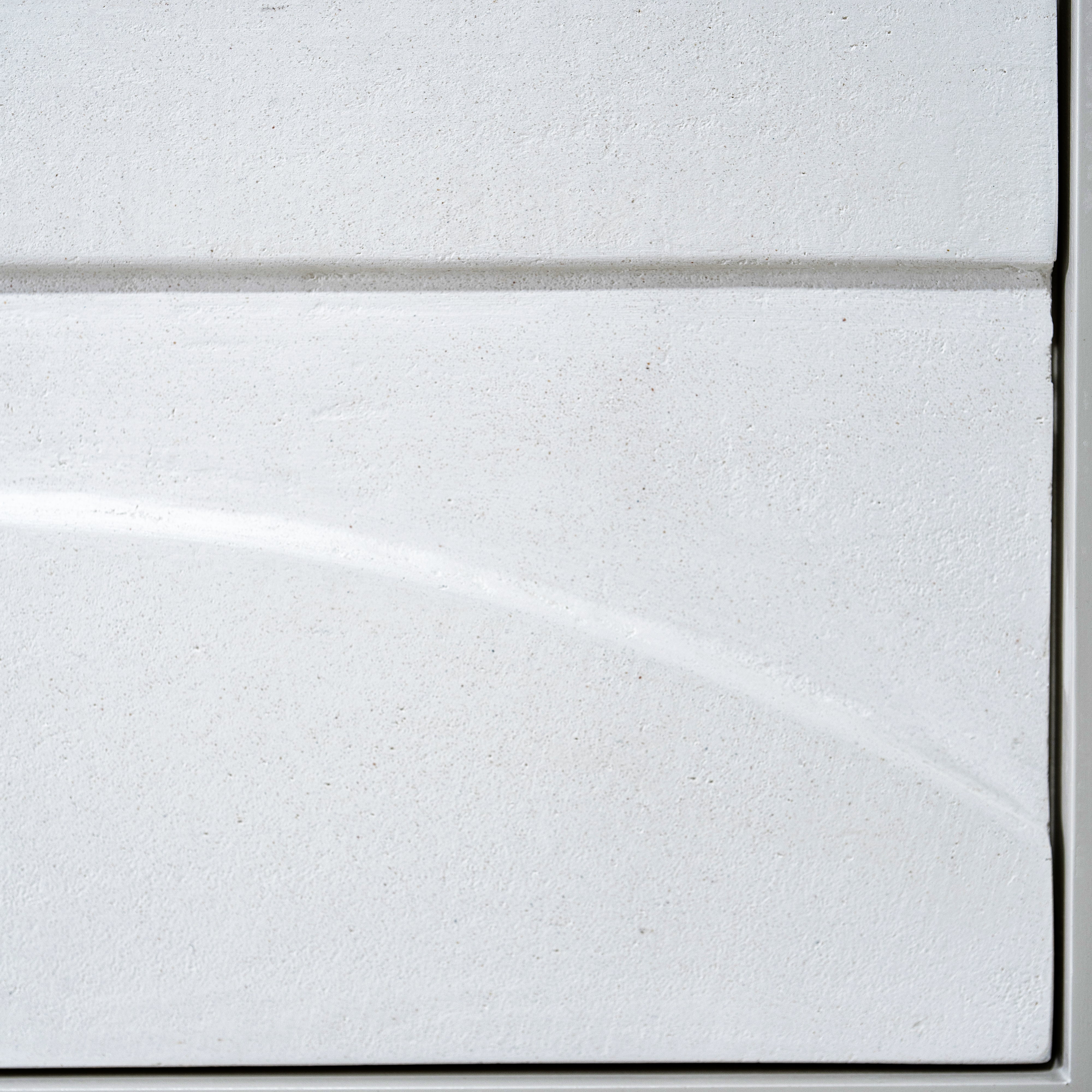 Material: Carved wood panel recovered with white limestone.