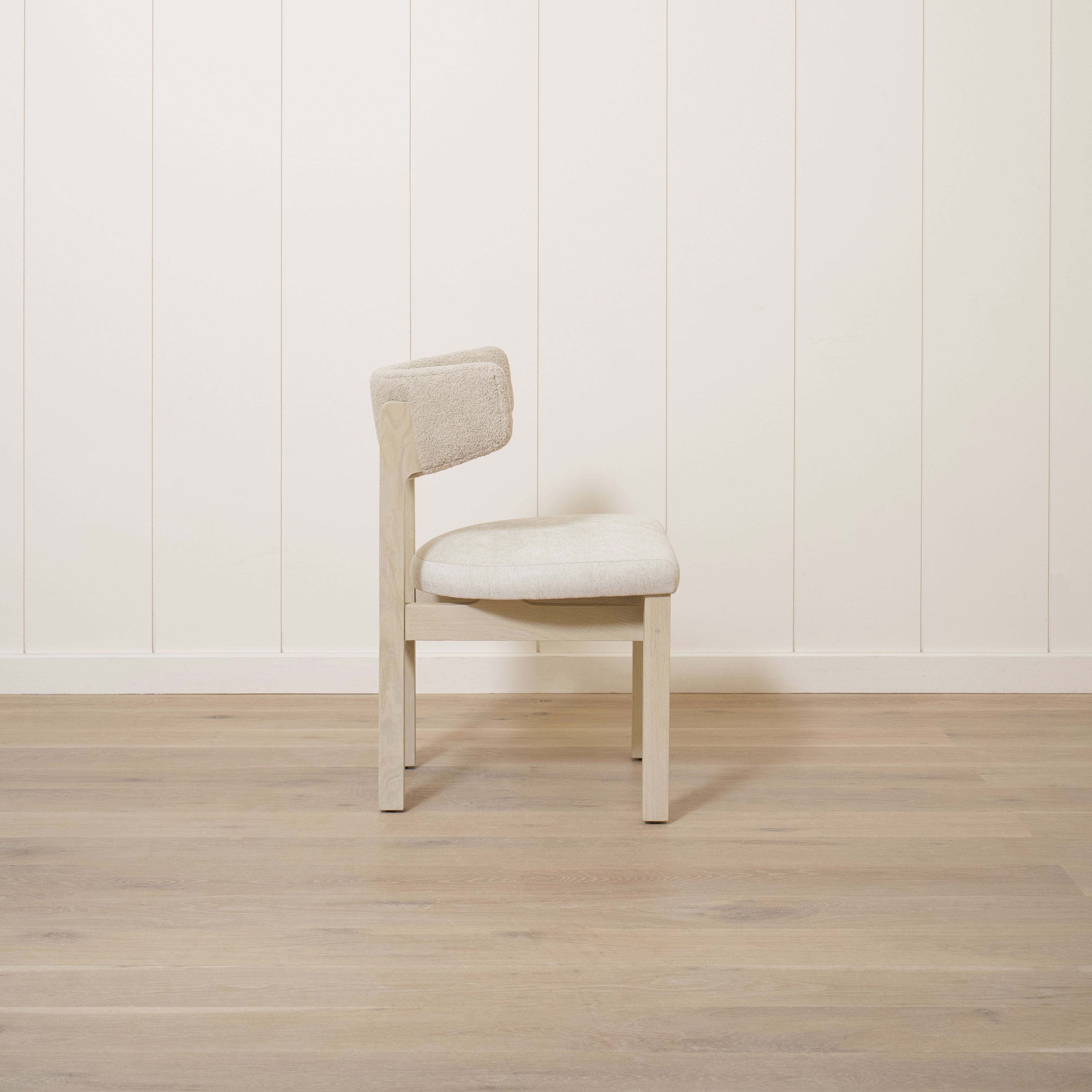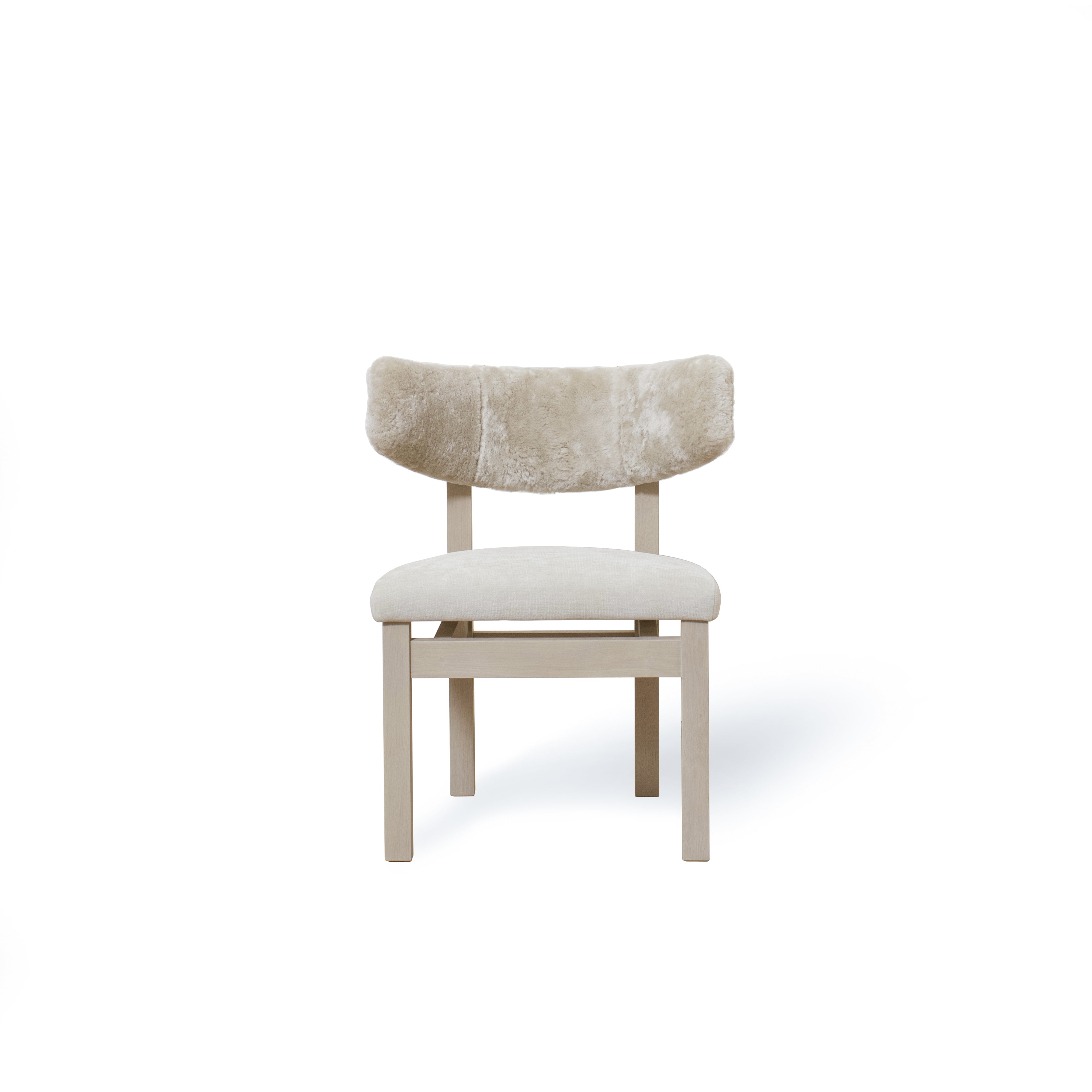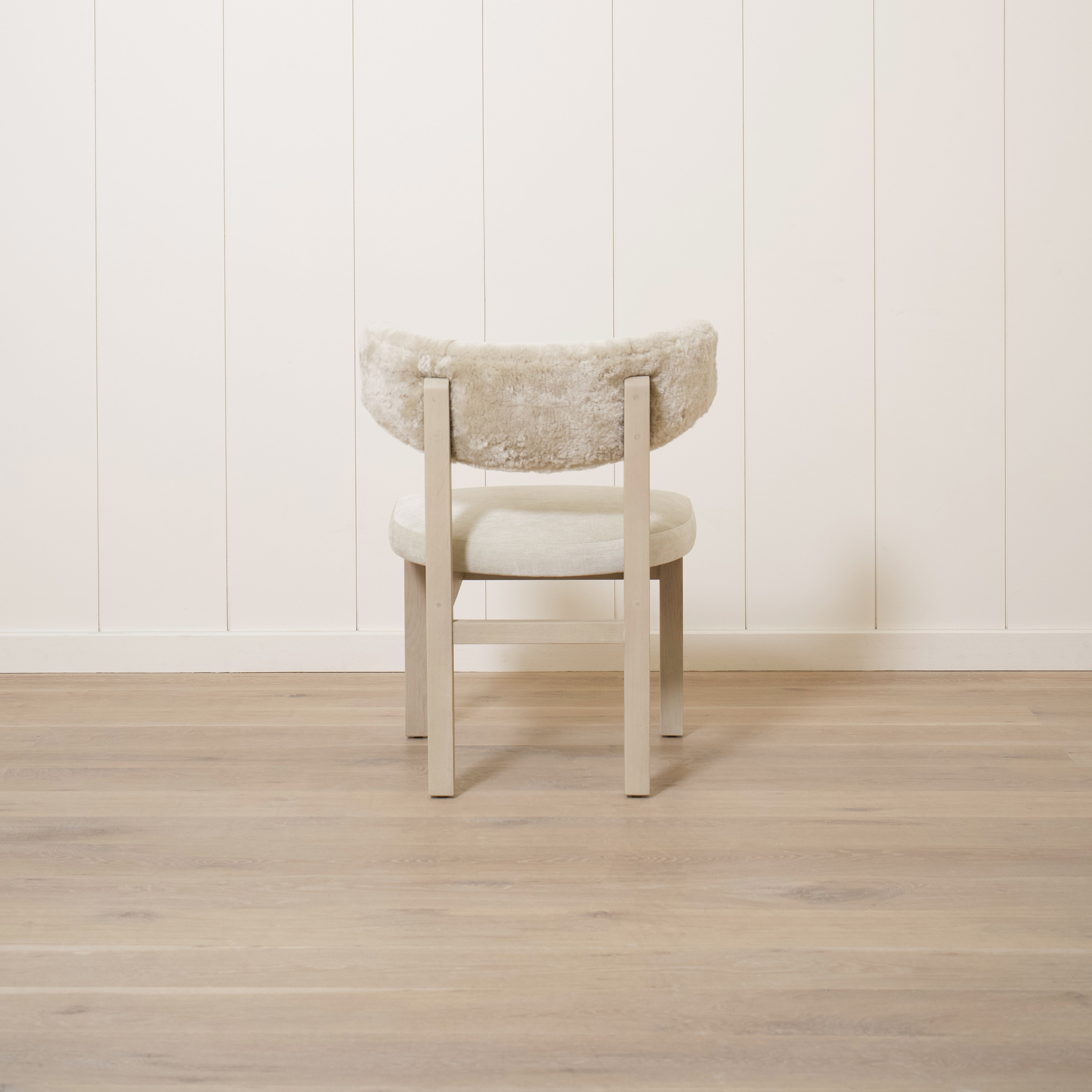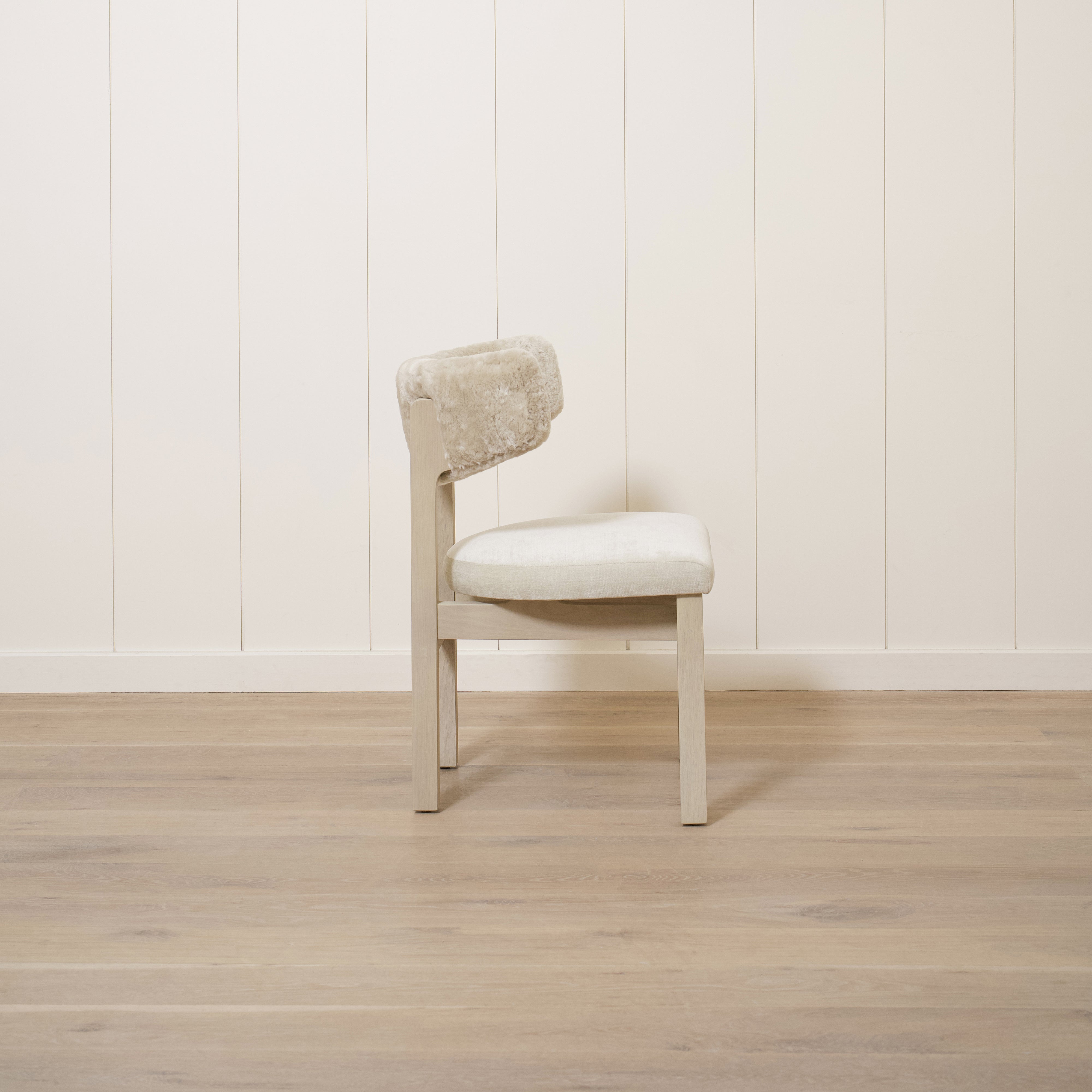 Variant 2 - Sheepskin White back, Sky Flax seat. Sand oak.