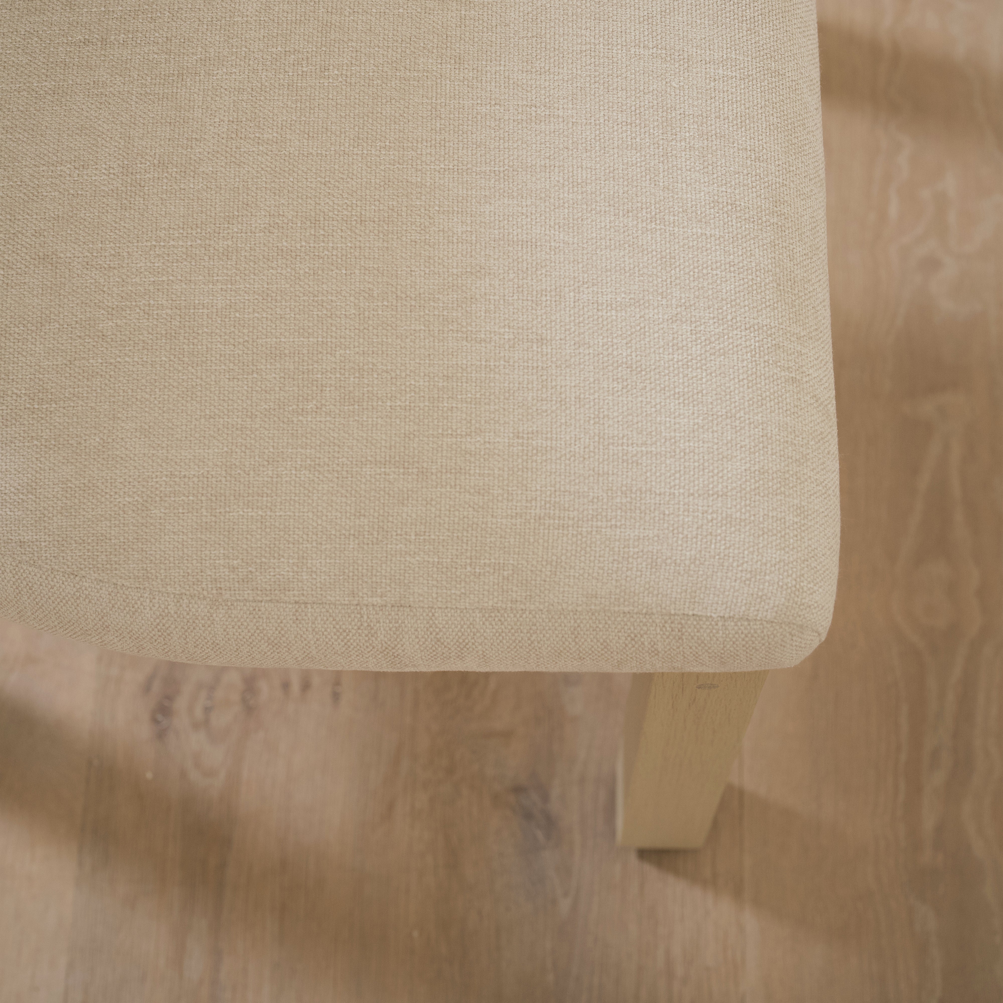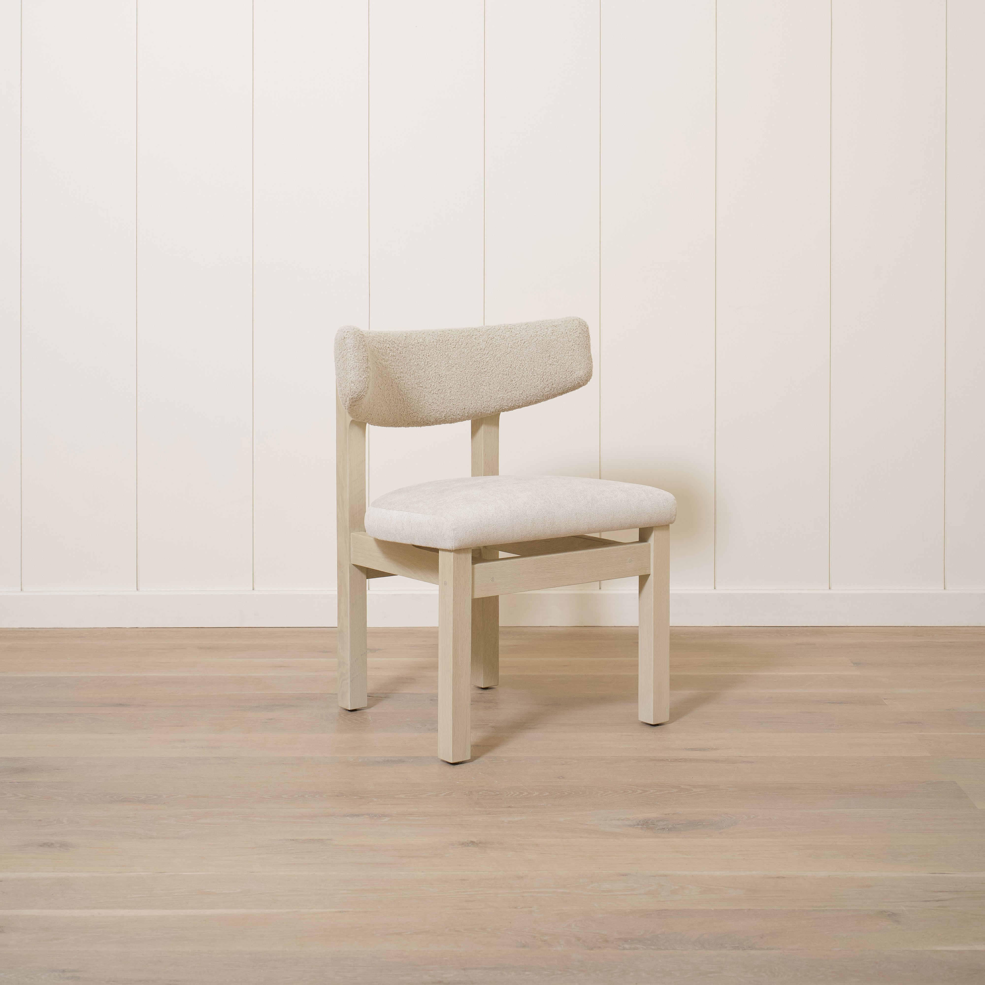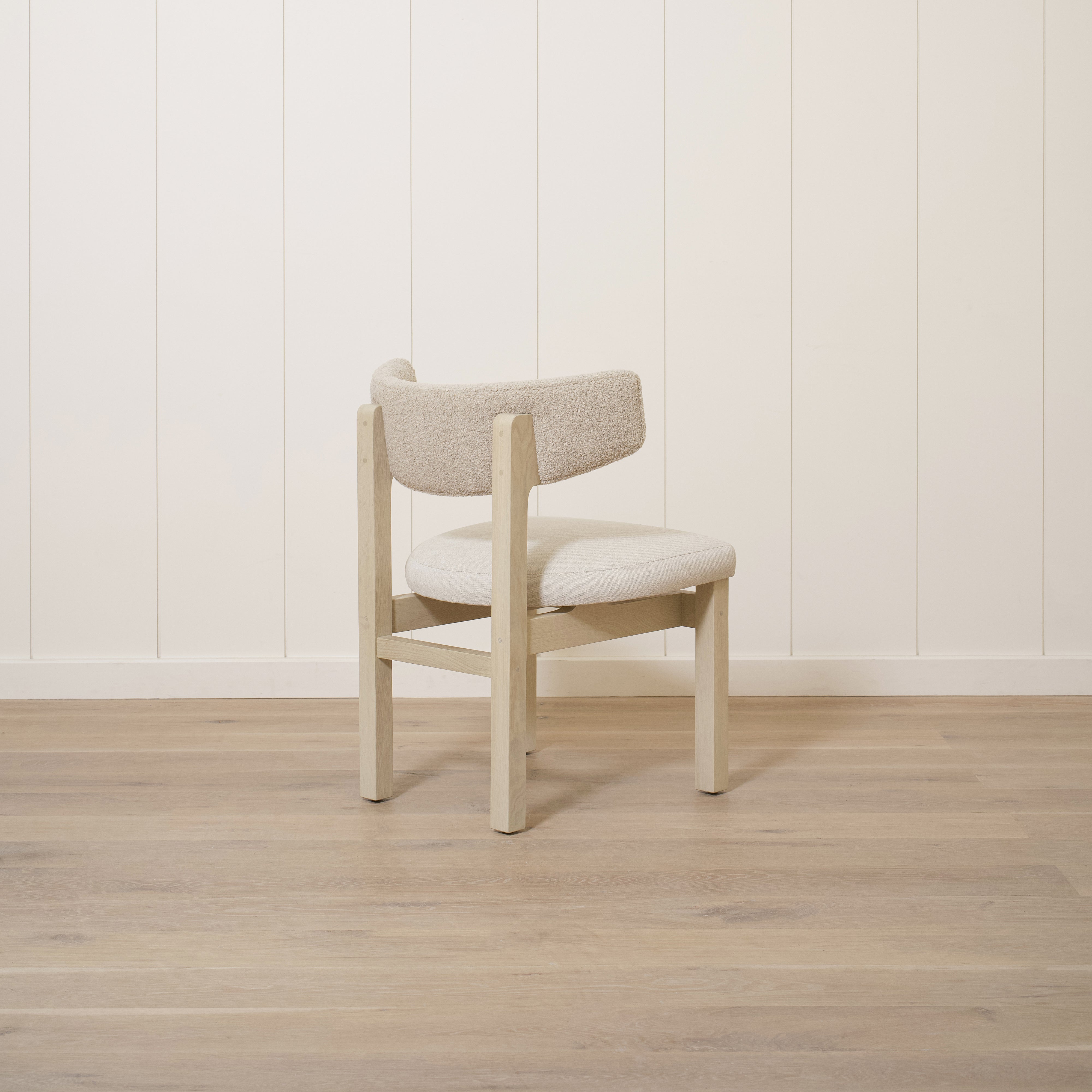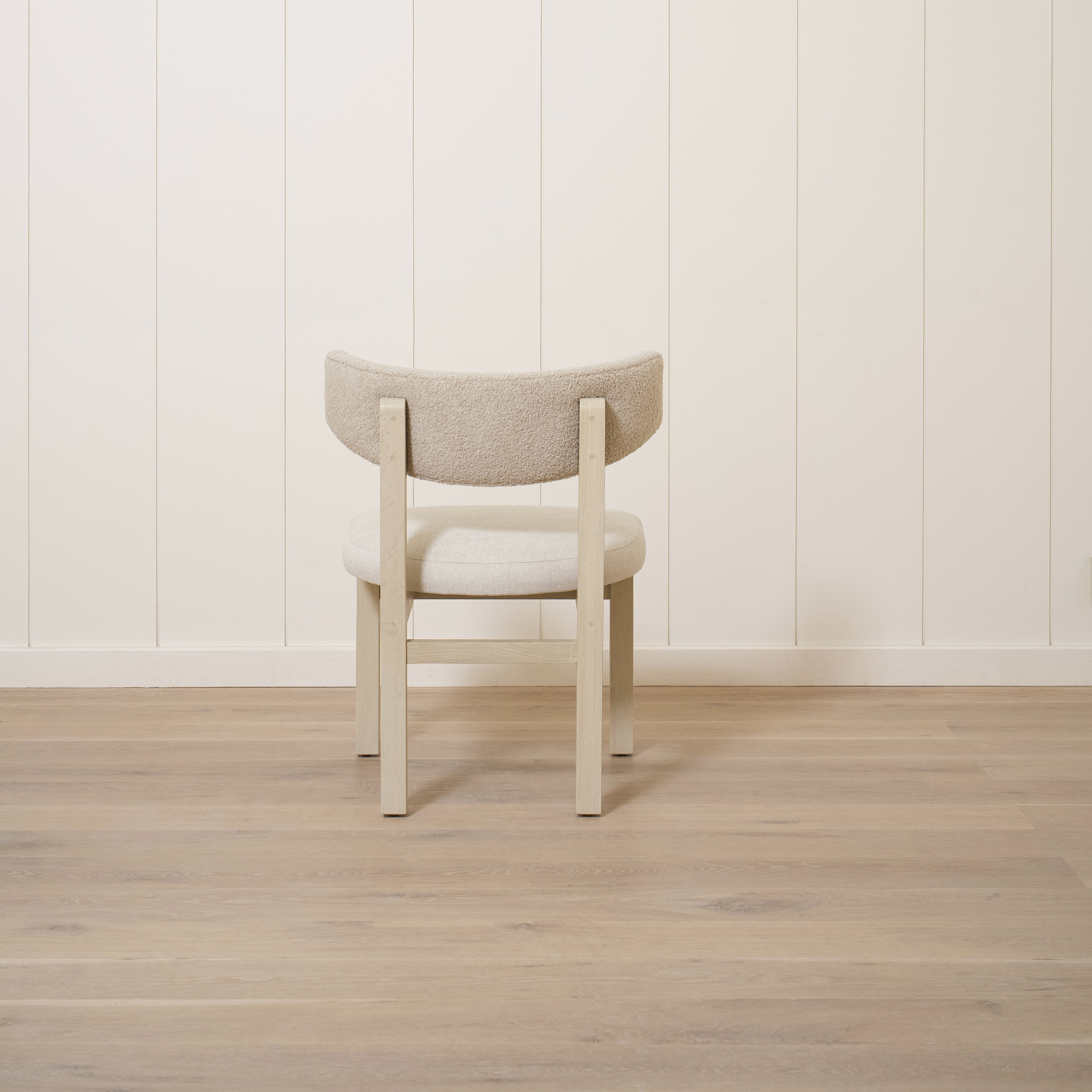 Variant 2 - Sheepskin White back, Sky Flax seat. Sand oak.