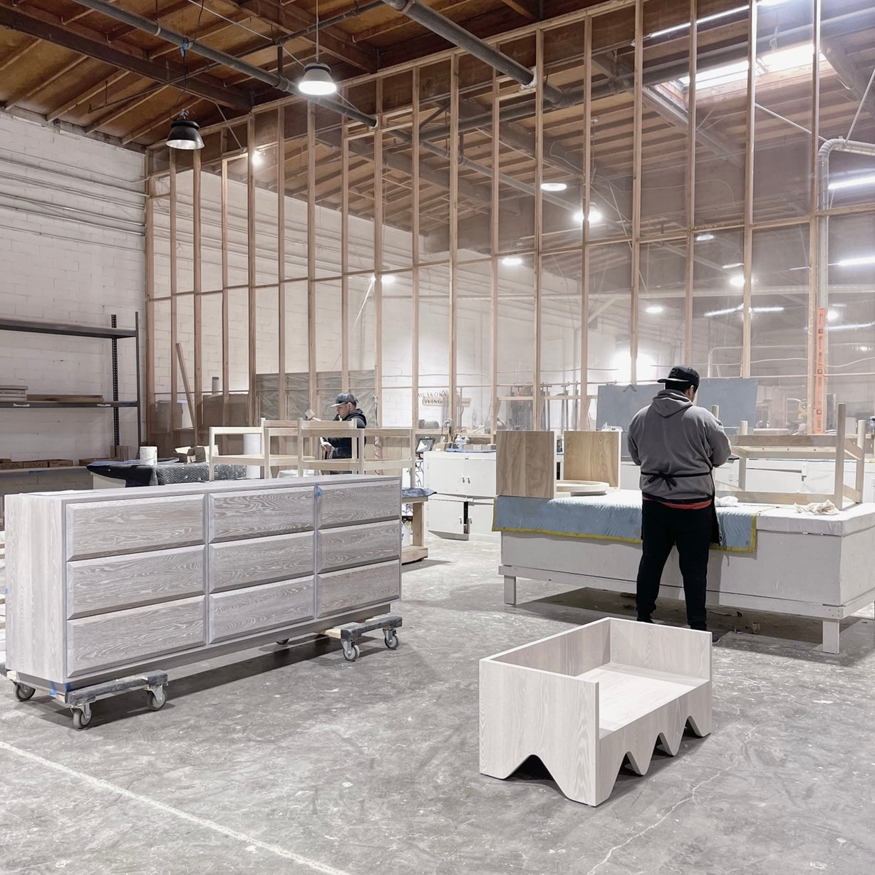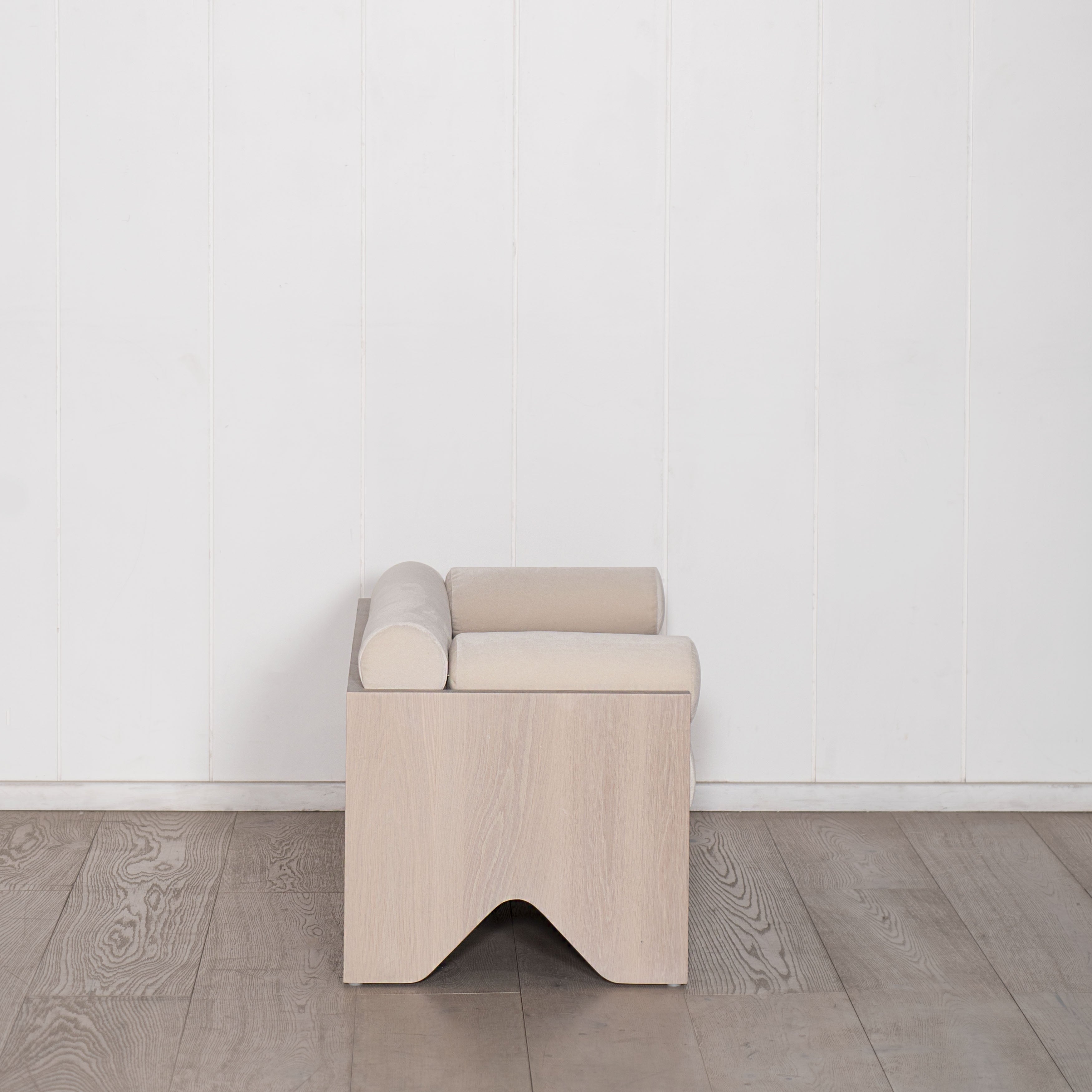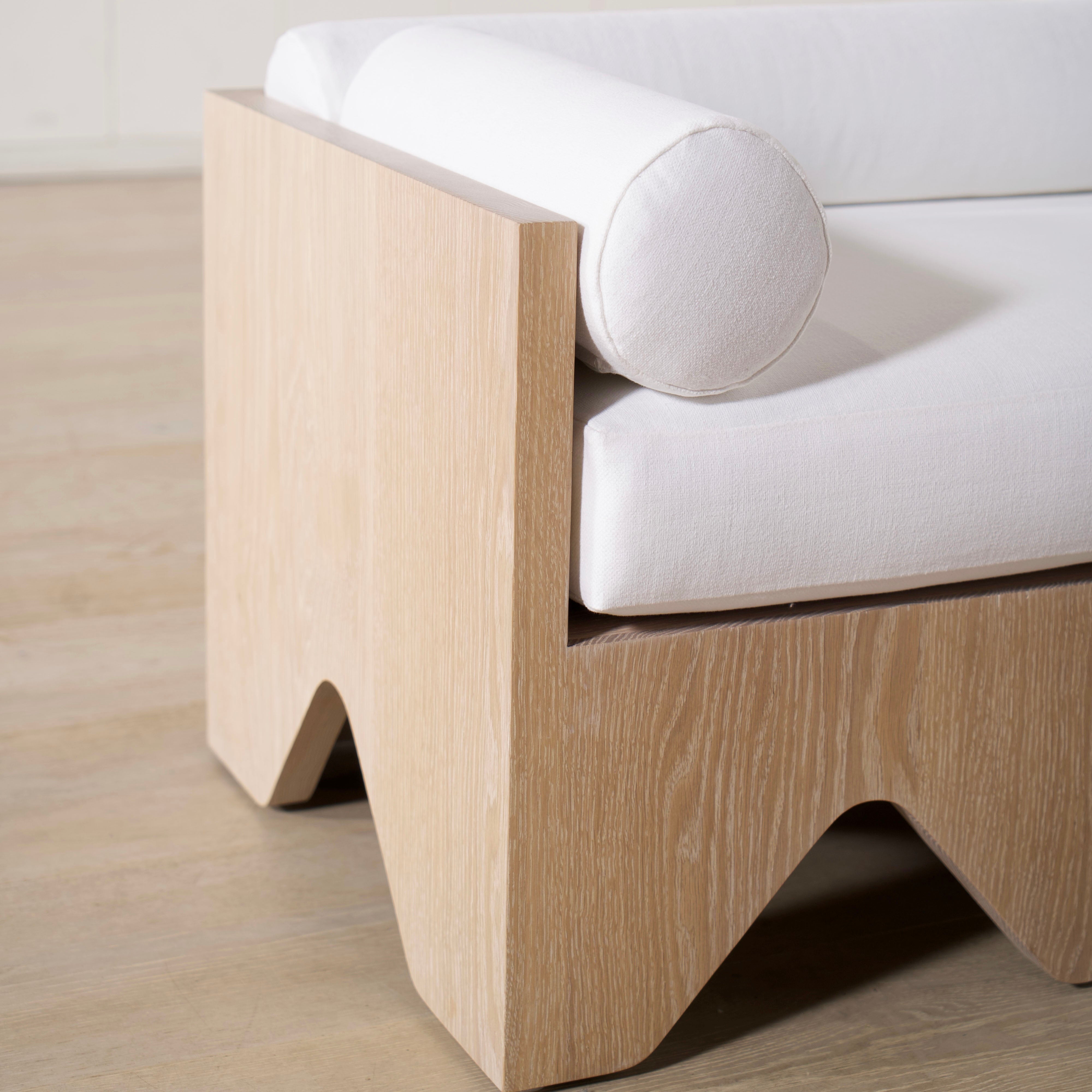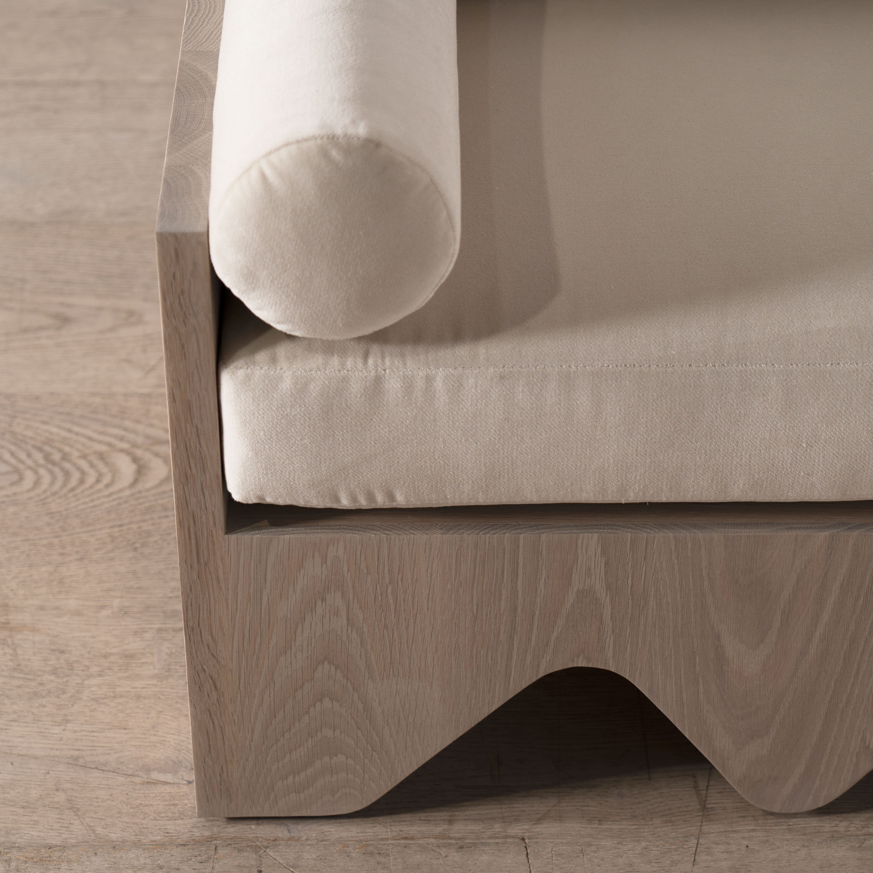 Featured Variant: Small Logan shown in Sky Natural, Sand oak base. Large Logan shown in Parker White, custom finish.