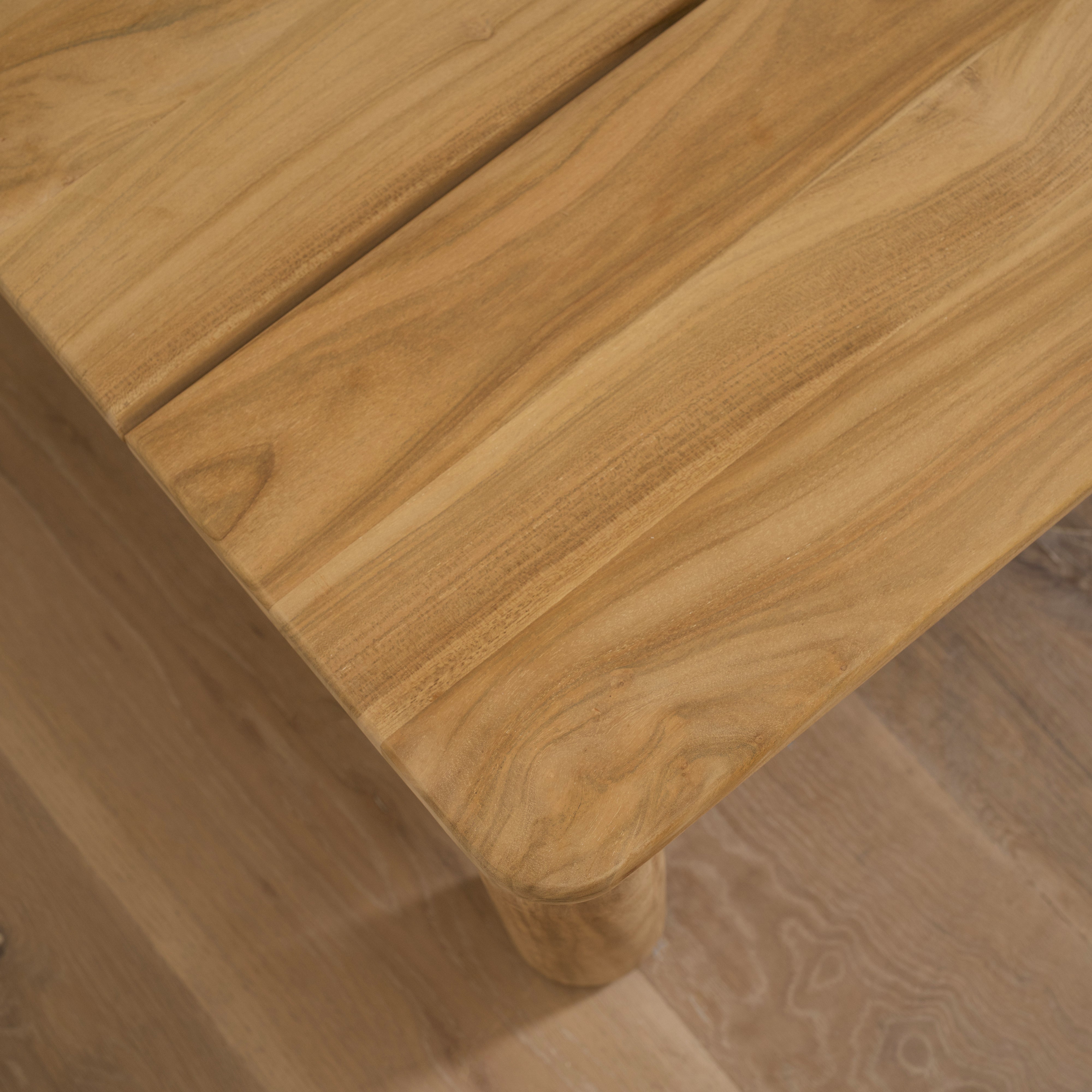 Over time, high-grade teak will naturally develop a silvery-grey patina, release oils, and may undergo slight movement. These are normal characteristics of premium, natural teak and a reflection of its organic nature. For best results, please refer to our care instructions for more information.